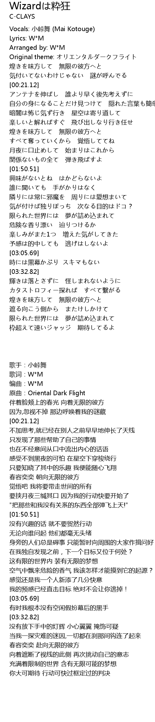 | [00:05.36] | 原曲:Oriental Dark Flight |