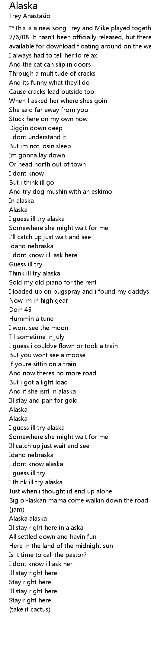 Alaska 歌词