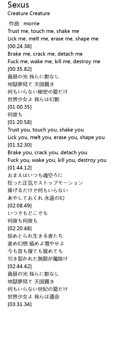 | [00:18.45] | Lick me, melt me, erase me, shape me |