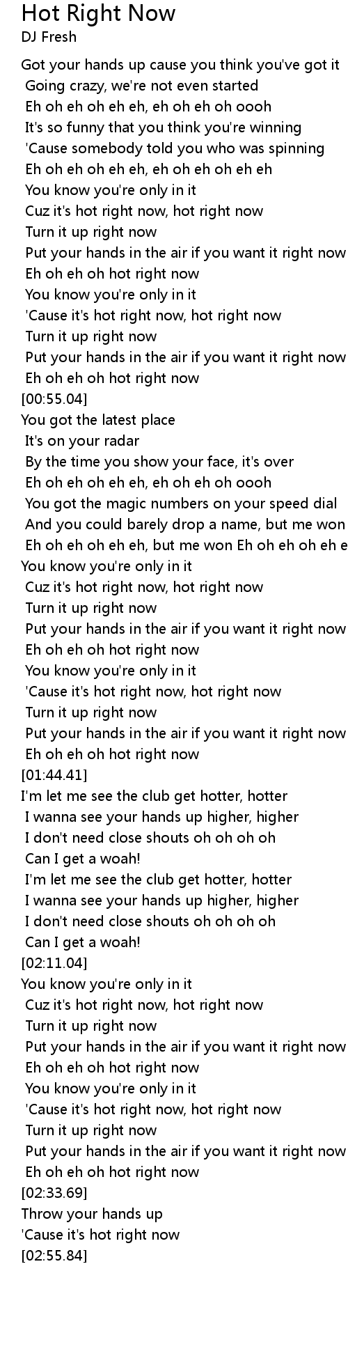 [02:24.20] 'Cause it's hot right now, hot right now