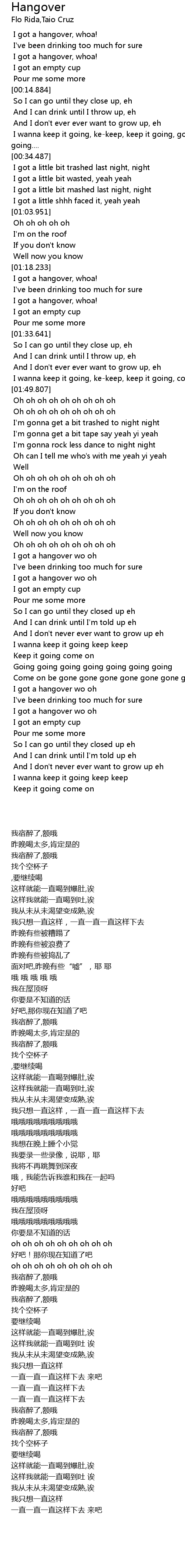 I got a hangover wo oh |