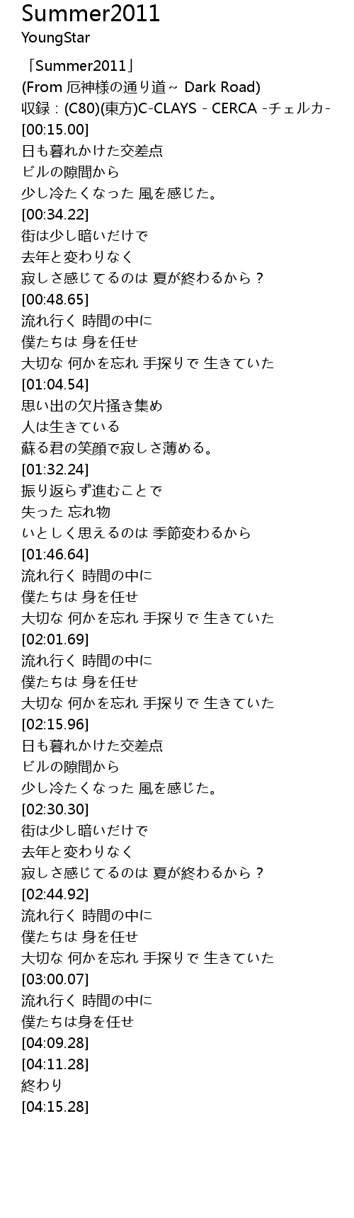 | [00:06.00] | 収録:(C80)(東方)C-CLAYS - CERCA -チェルカ- |