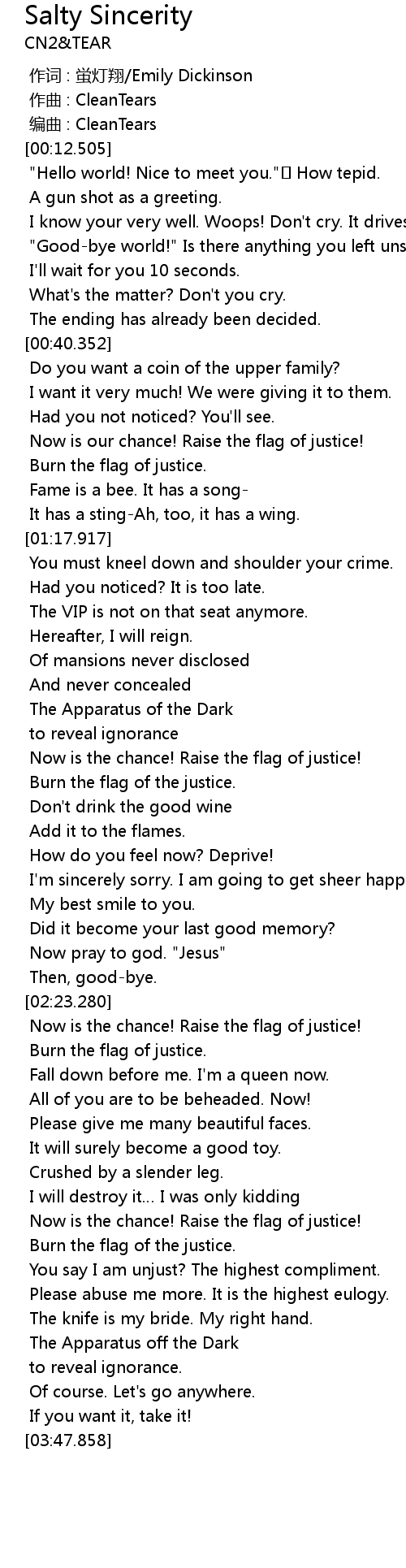 | [00:27.906] | " Goodbye world!" Is there anything you left unsaid? |