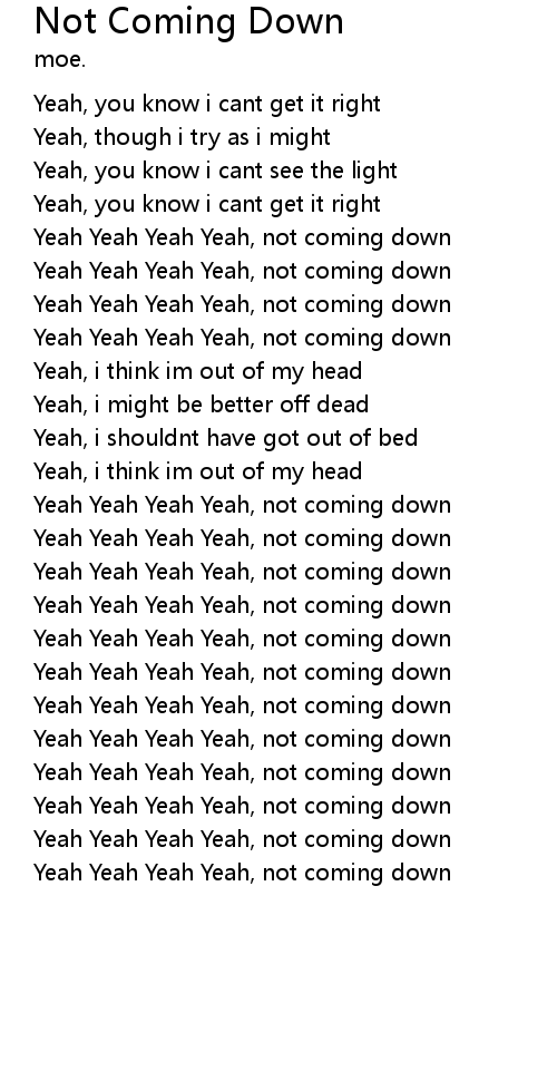 Yeah Yeah Yeah Yeah, not coming down |