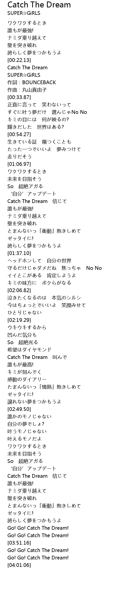 | [03:46.31] | Go! Go! Catch The Dream! |