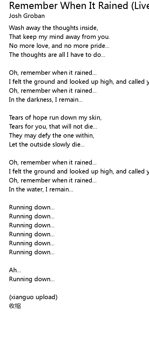 | 歌曲 | Remember When It Rained (Live) |