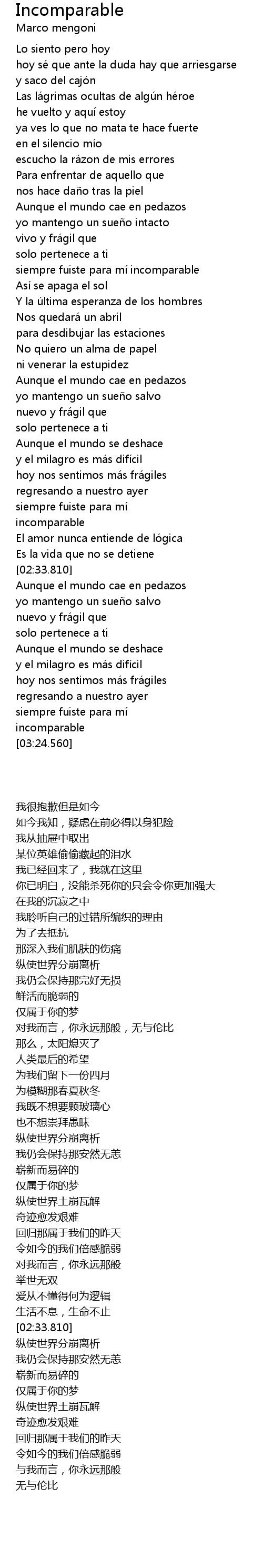 | [03:20.470] | 无与伦比 |