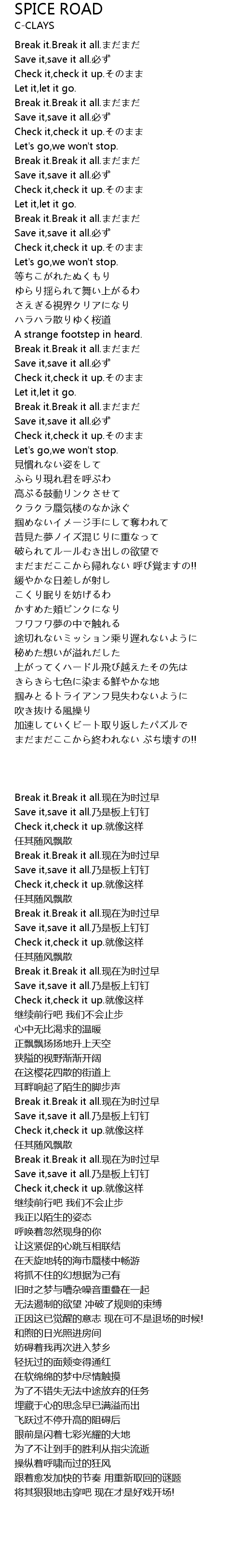 | [01:04.23] | Break it.Break it all.まだまだ |