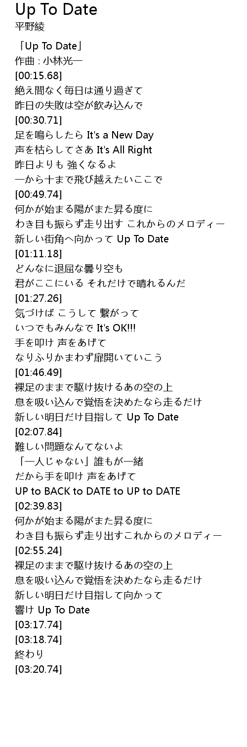 | [00:00.68] | 「Up To Date」 |