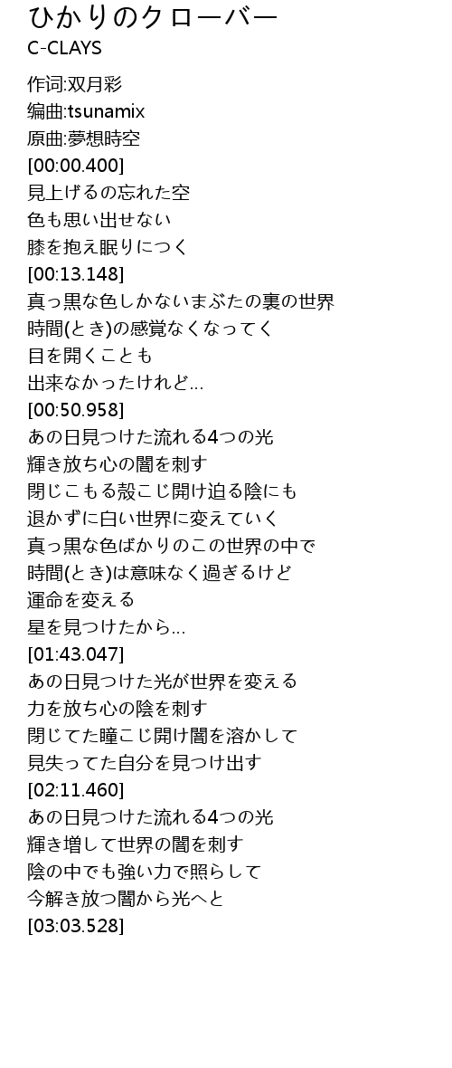 | [02:38.061] | あの日見つけた流れる4つの光 |