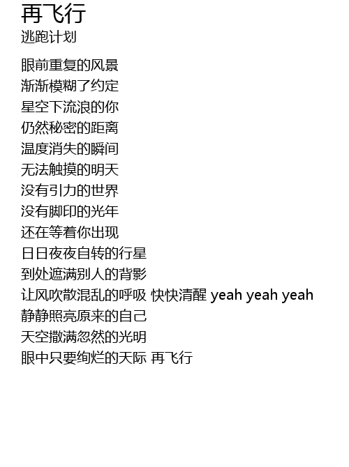 | [01:00.338] | 让风吹散混乱的呼吸 快快清醒 yeah yeah yeah |