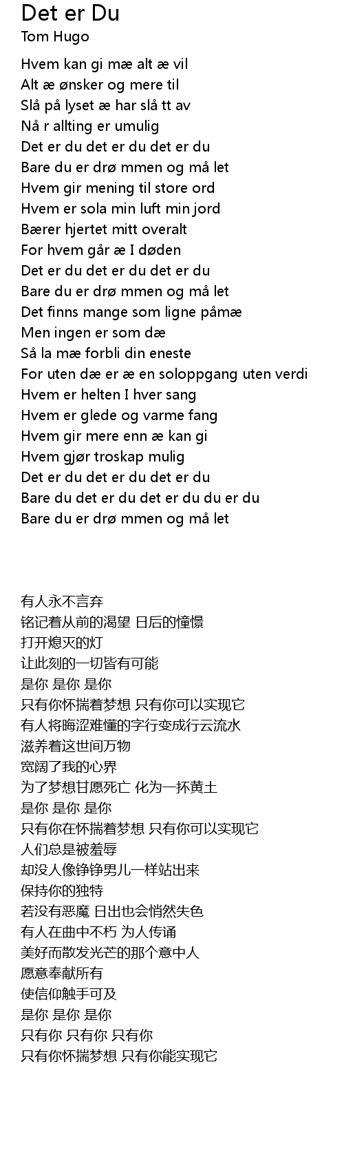 | [00:18.45] | Hvem kan gi mæ alt æ vil |