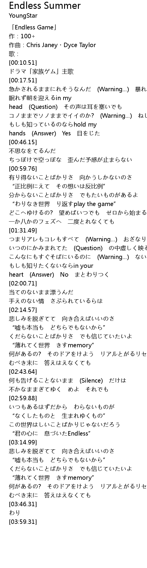 | [00:00.51] | 「Endless Game」 |