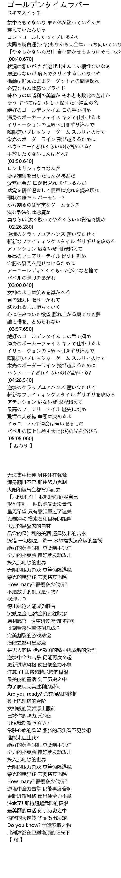 | [03:59.980] | 絶好のゴールデンタイム この手で掴め |