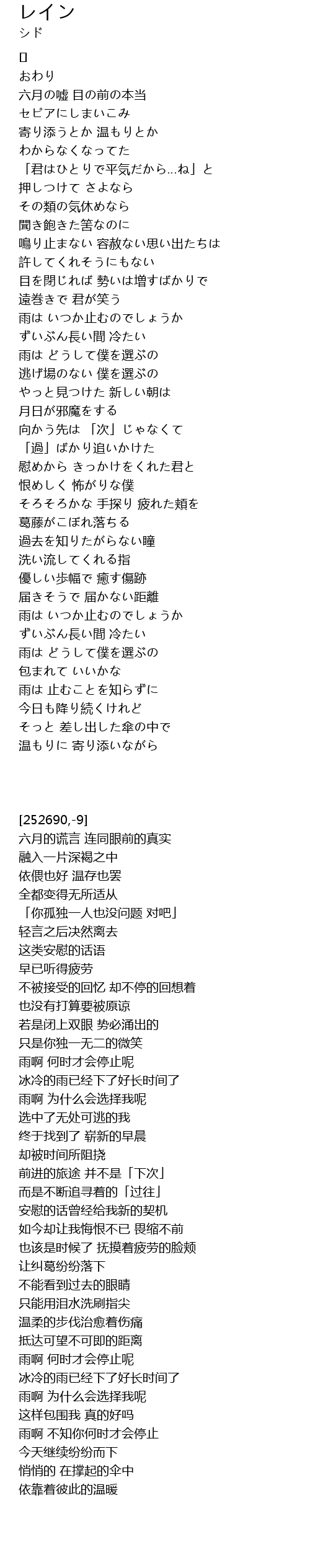 | 歌曲 | レイン |