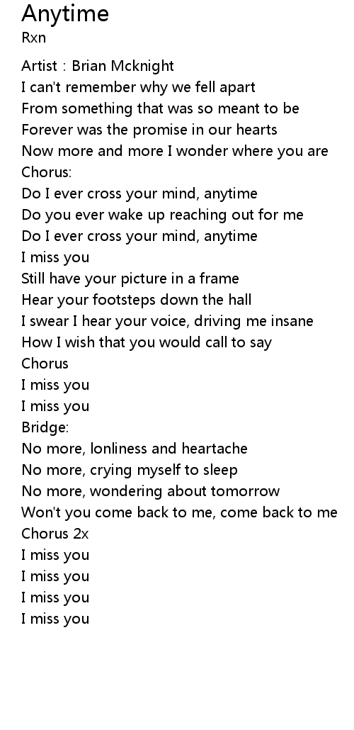| Do I ever cross your mind, anytime | |