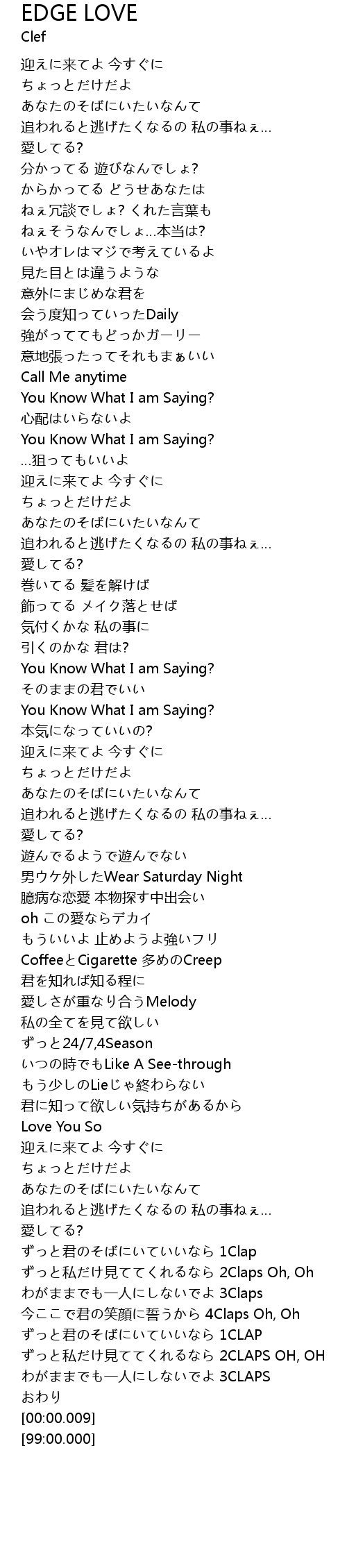 | [03:51.15] | ずっと私だけ見ててくれるなら 2Claps Oh, Oh |