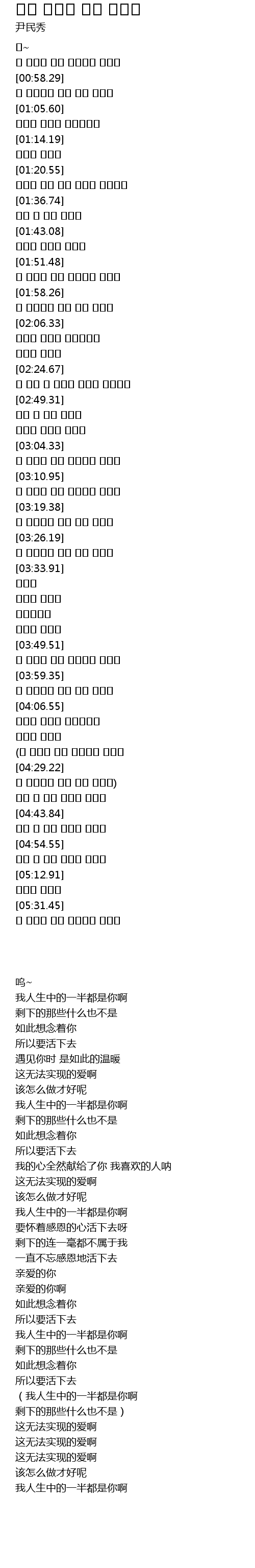 | [00:53.06] | 내 인생에 반은 그대에게 있어요 |