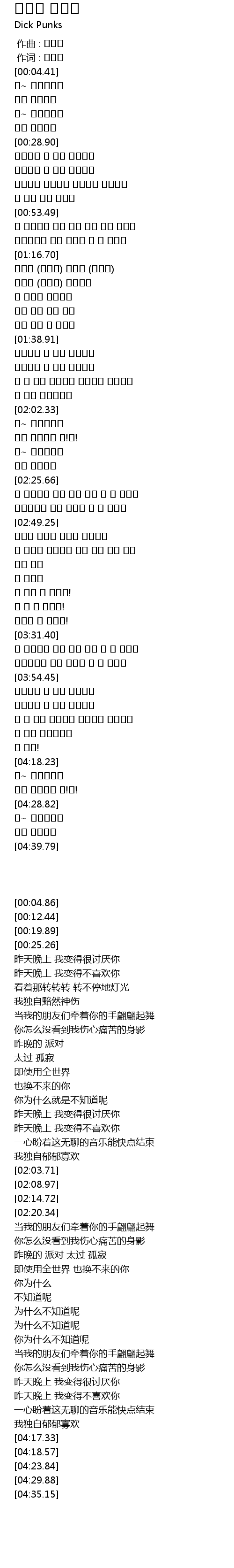 | [04:01.65] | 어젯밤에 난 네가 싫어졌어 |
