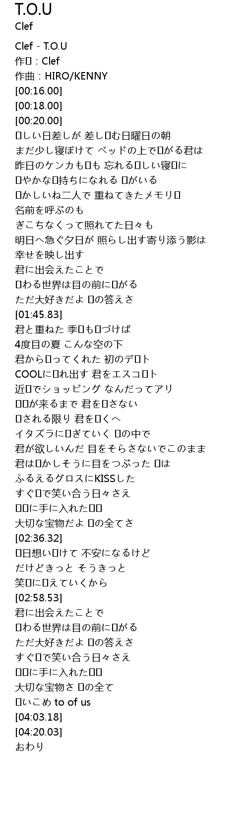 | [00:00.00] | Clef T. O. U |