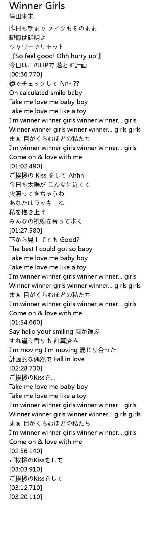 | [02:41.480] | I' m winner winner girls winner winner... girls |