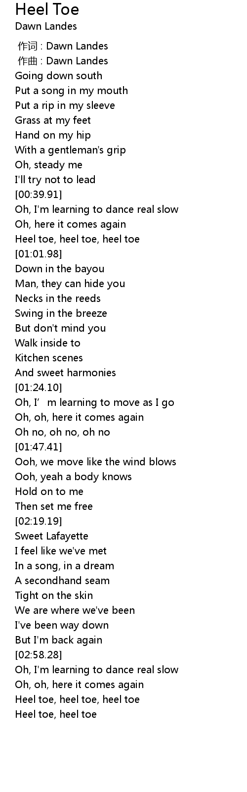| [00:58.10] | Heel toe, heel toe, heel toe |