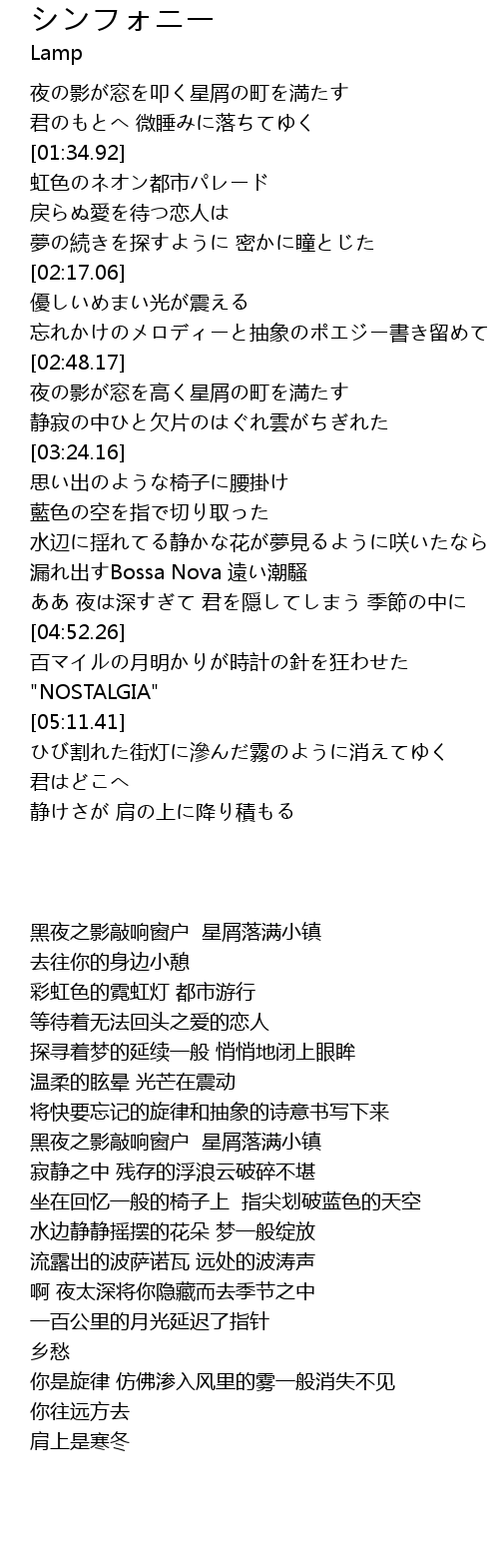 | [04:21.42] | 漏れ出すBossa Nova 遠い潮騒 |