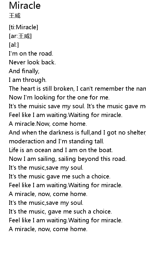 | [02:39.81] | Feel like I am waiting. Waiting for miracle. |