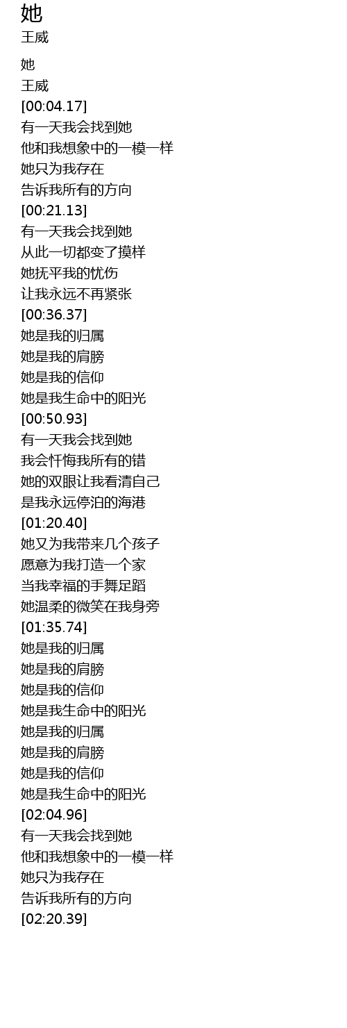 | [00:44.53] | tā shì wǒ de xìn yǎng |