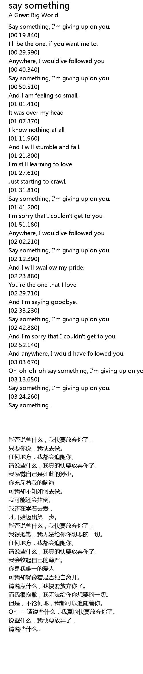 Oh-oh-oh-oh say something, I'm giving up on you. |