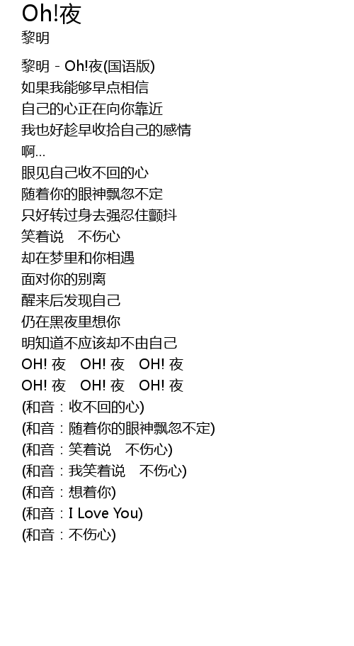 | 黎明 - Oh!夜(国语版) | |