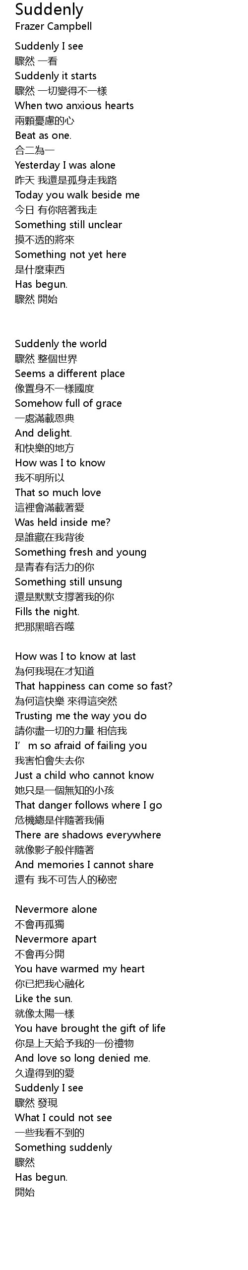 | 歌曲 | Suddenly |