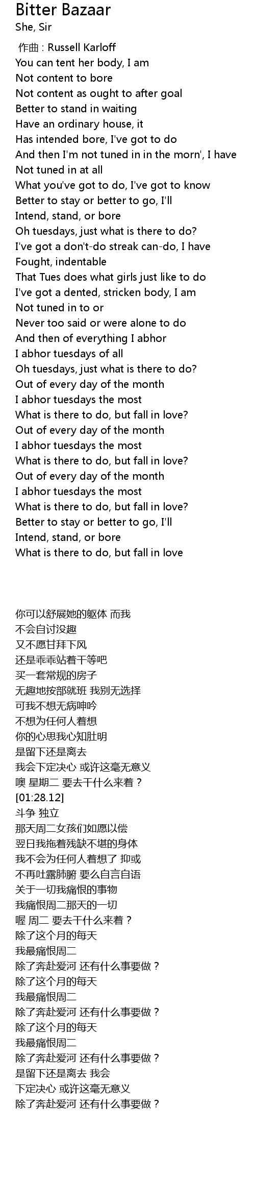 | [01:05.37] | Oh tuesdays, just what is there to do? |