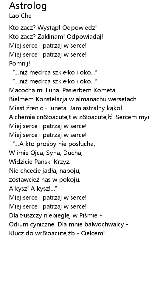 | Alchemia cnót w żółć. Sercem mym szron. | |
