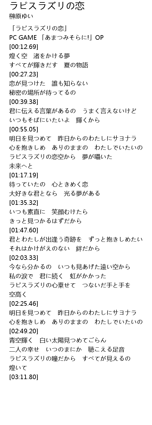| [00:03.66] | 「ラピスラズリの恋」 |