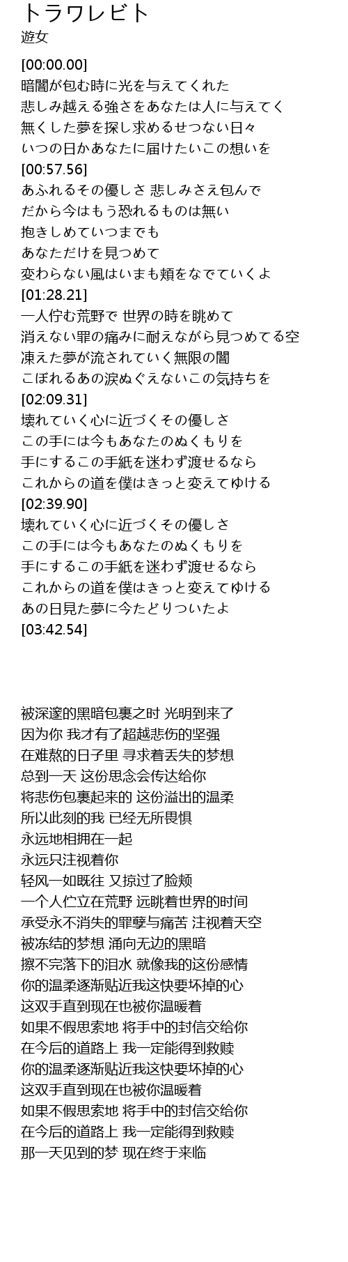 | [00:58.53] | あふれるその優しさ 悲しみさえ包んで |