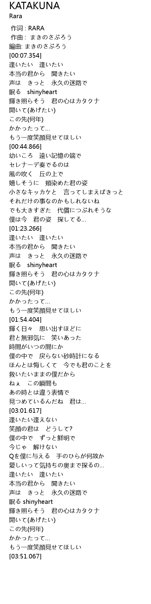 輝き照らそう 君の心はカタクナ |