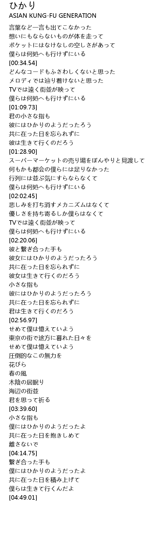 | [04:02.43] | 僕にはひかりのようだったよ |