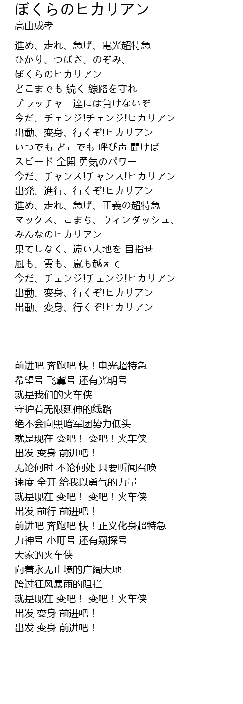 | [00:07.12] | 進め、走れ、急げ、電光超特急 |