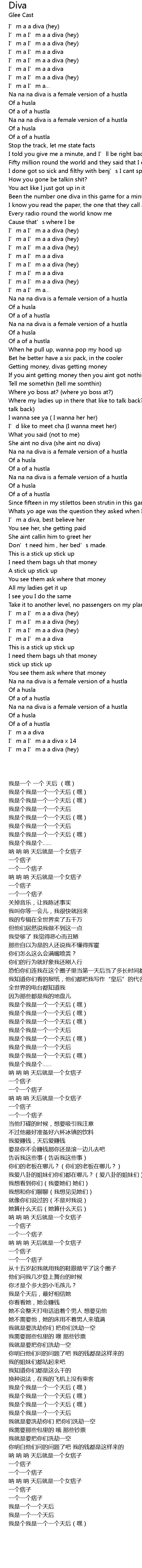 | [03:03.196] | I' m a I' m a a diva hey |