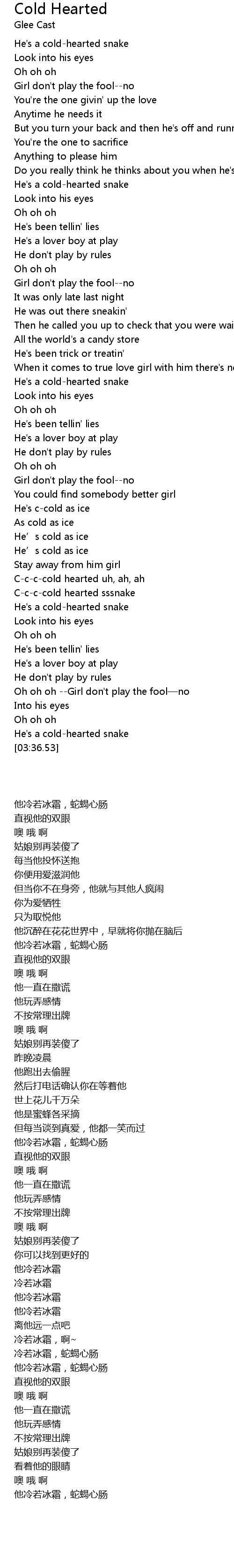 | [02:40.78] | Ccccold hearted uh, ah, ah |