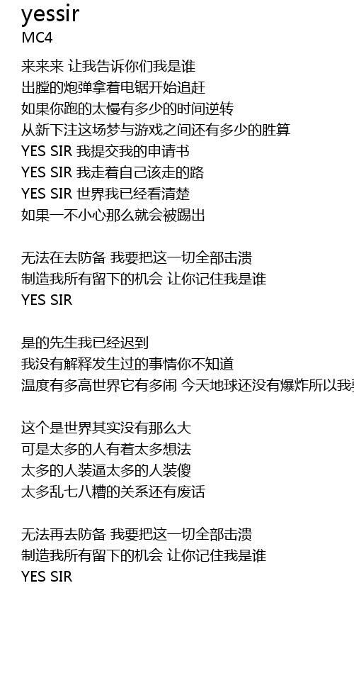 | YES SIR wǒ zǒu zhe zì jǐ gāi zǒu de lù | |