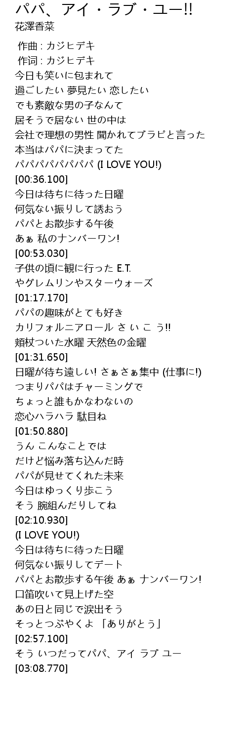 | [00:33.420] | パパパパパパパパ (I LOVE YOU!) |