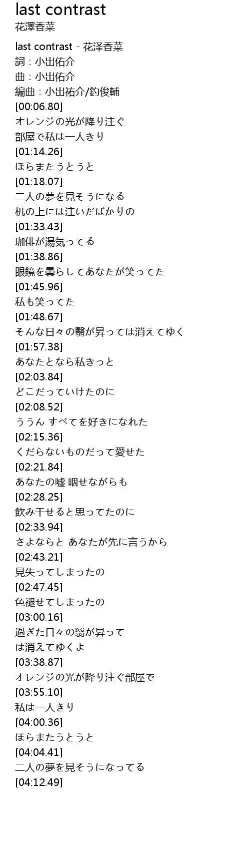 | [00:01.10] | last contrast - 花泽香菜 |