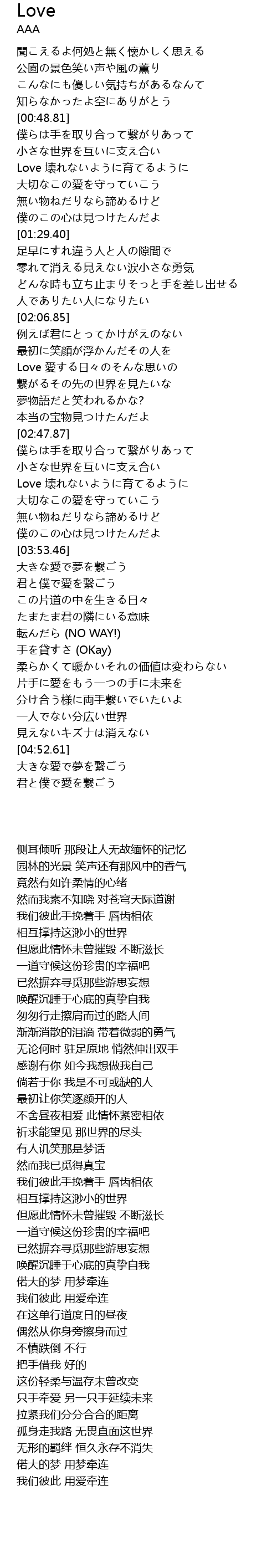 | [04:53.72] | 大きな愛で夢を繋ごう |