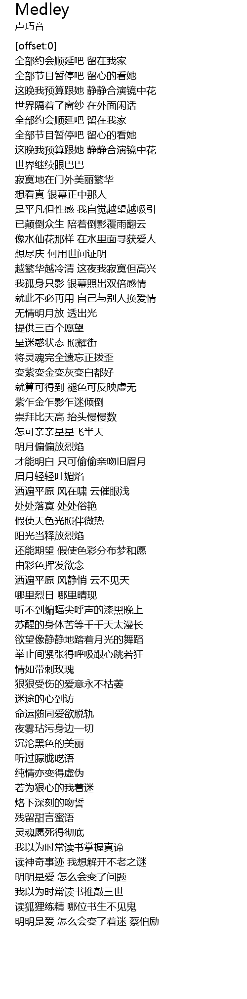 | [01:06.73] | 全部节目暂停吧 留心的看她 |