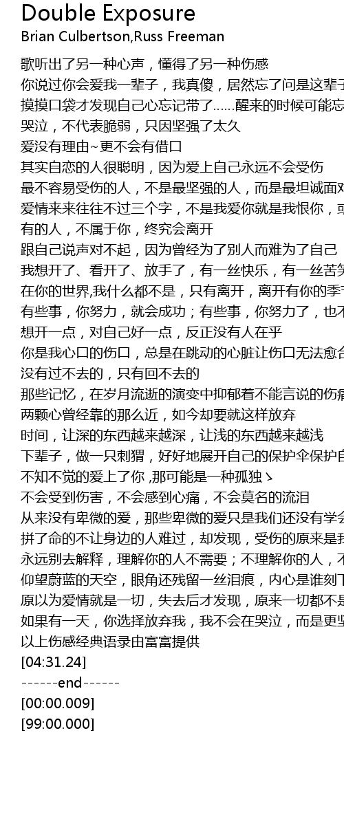 | [04:30.58] | 以上伤感经典语录由富富提供 |