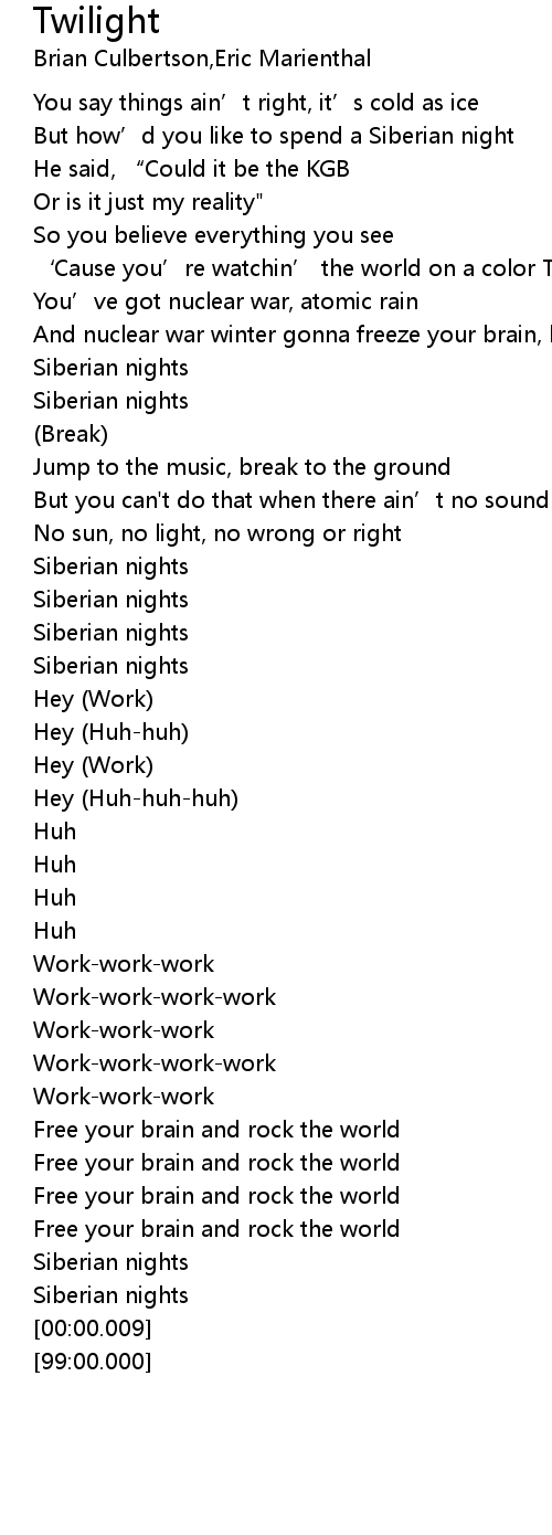 | [00:49.86] | And nuclear war winter gonna freeze your brain, huh |