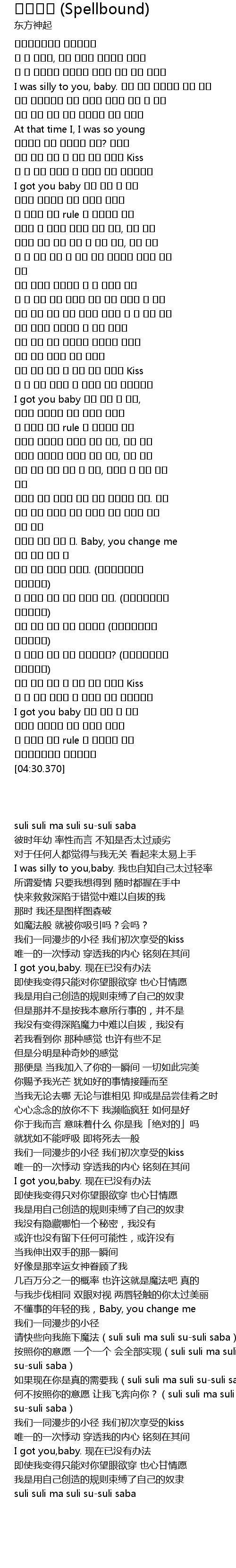 | [03:42.150] | 请快些向我施下魔法(suli suli ma suli su-suli saba) |