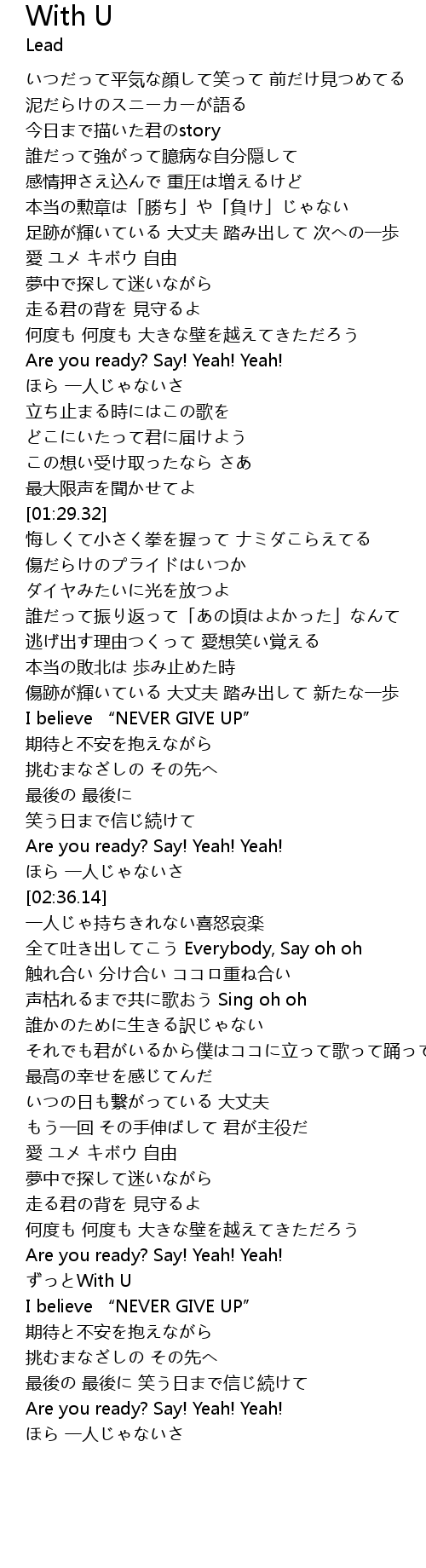 | [02:06.61] | I believe “NEVER GIVE UP” |